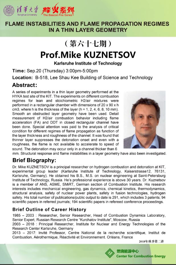报告题目:Flame Instabilities and Flame Propagation Regimes in a Thin Layer Geometry